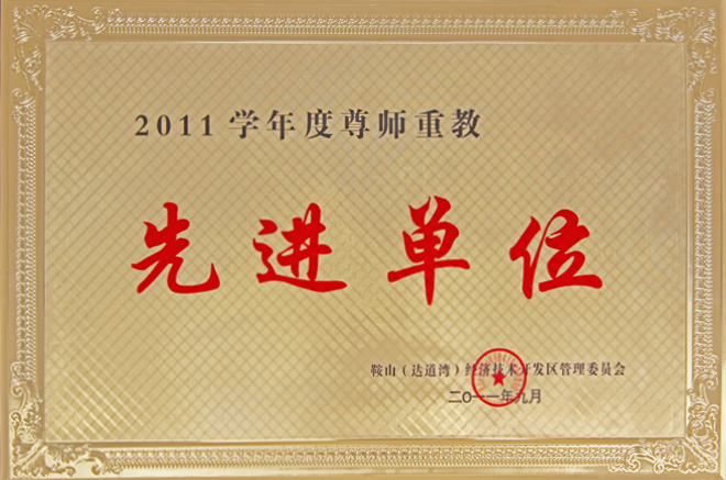 2011年9月,公司被鞍山(達(dá)道灣)經(jīng)濟(jì)技術(shù)開發(fā)區(qū)管理委員會授予“2011學(xué)年度尊師重教先進(jìn)單位”。